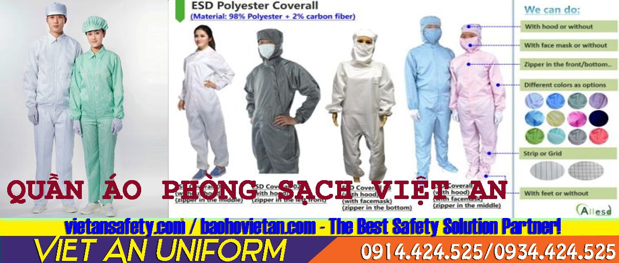 - Bạn có nhu cầu đặt may đồng phục phòng sạch cho nam nữ? Vậy cần lưu ý những gì để đặt may đồng phục chất lượng và đẹp nhất? Bạn muốn in hoặc thêu logo lên áo đồng phục phòng sạch của công ty bạn, đừng lo lắng Việt An workwear safety sẵn sàng tư vấn và giúp bạn đây.